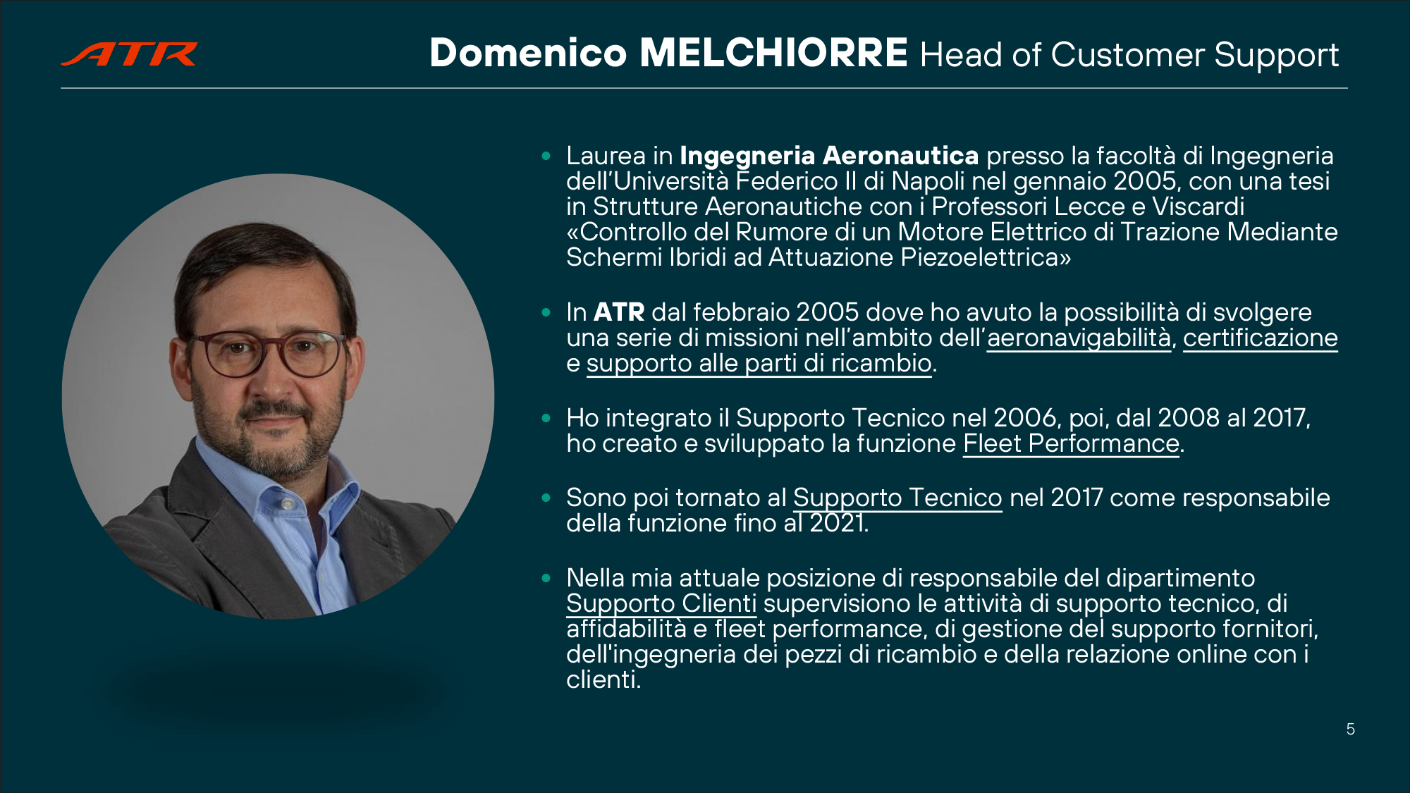Ing. Domenico MelchiorreATR, Head of Customer Support