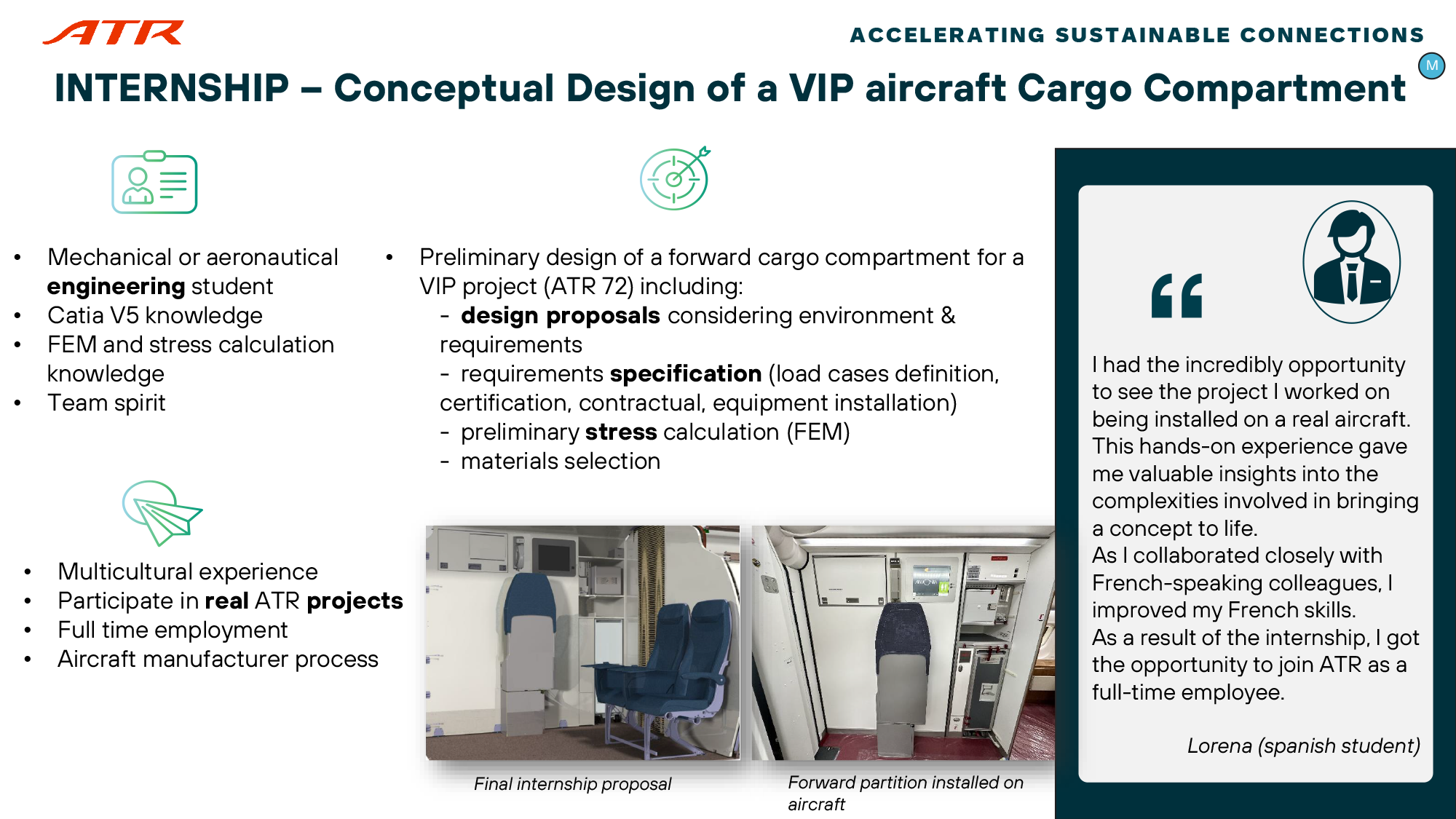 Dal 2006 al 2011, Ingegnere supporto tecnico flotta in servizio per la parte struttura - ATR, Francia: supporto tecnico alle compagnie aeree e basi di manutenzione per le strutture. Dal 2011 al 2019, Responsabile design della parte struttura (ali, fusoliera, nacelles e piani di coda) ATR, Francia.